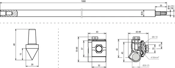 | For earth rods Ø (Connection clamp) | 20-25 mm |