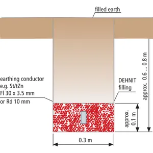 The extremely swellable and powdery special clay can bind water very well and thus represents a conductive enclosure of the earth electrode which has a positive effect concerning the dissipation resistance.