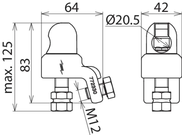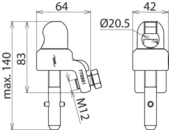 | For fixed ball point Ø | 20 mm |
