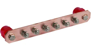 Equipotential bonding bar, industrial design, 8 terminals w. insulators, Cu