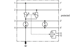 Compact combined arrester for protecting electroacoustic systems (e.g. voice alarm systems, loudspeaker systems). Protection of one galvanically isolated pair; direct or indirect shield earthing. Direct plug-in technology allows fast conductor connection without tools. Easy replacement of the arrester is ensured by the integrated terminal units which can be released and then removed from the enclosure. Integrated remote signalling contact (break contact).