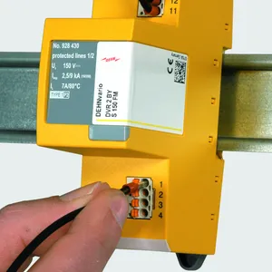 Compact 3-in-1 surge arrester for protecting analogue camera systems. Protection of the video signal (BNC connection), a data signal (RS485) and a voltage supply (230 V a.c.). Direct plug-in technology allows fast conductor connection without tools. Easy replacement of the arrester is ensured by the integrated terminal units which can be released and then removed from the enclosure. Integrated overload indication (230 V).