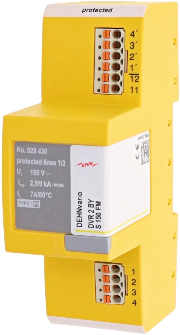 D1 Lightning impulse current (10/350 µs) per line: 2.5 kA