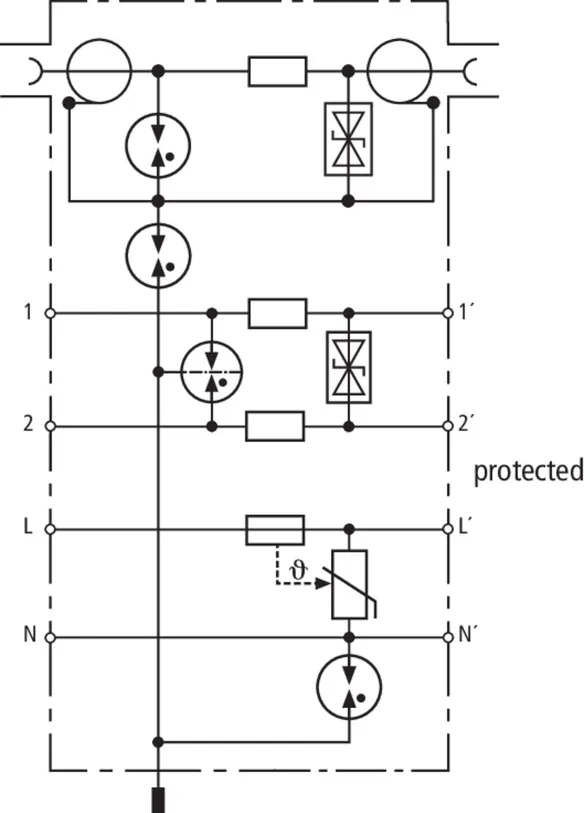 Voltage protection level [N-PE] (UP ) ≤ 1.5 kV