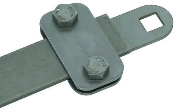 Clamping piece for connecting flat material, StSt Clamping piece for connecting flat material to structural parts or e.g. connection clamps for steel girders (without a hole in the flat strip)