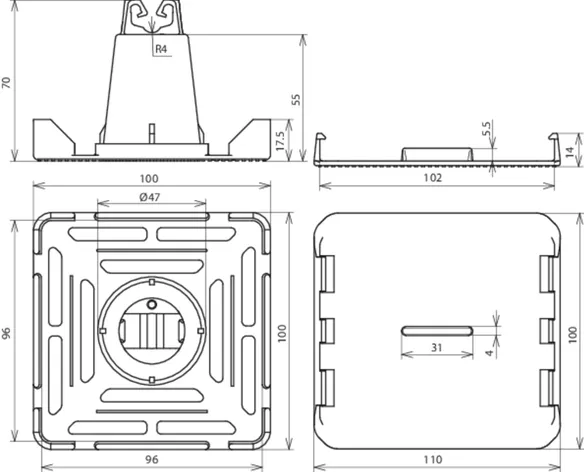 | Separate plastic upper part for type KF (Part No. 253 016) is available upon request. | |