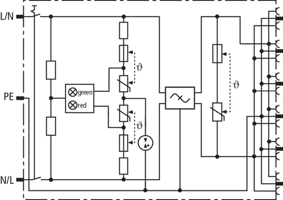 | Total discharge current (8/20 µs) [L+N-PE] (Itotal ) | 5 kA |