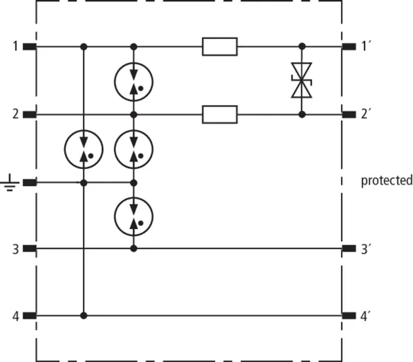 | D1 Lightning impulse current (10/350 µs) per line (Iimp ) | 1 kA |