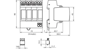 - Prewired complete unit consisting of a base part and plug-in protection modules