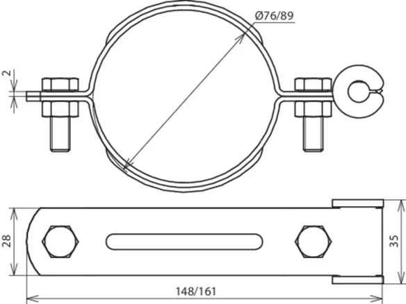 For fixing round conductors to service entry masts, insulated with clamp bush.