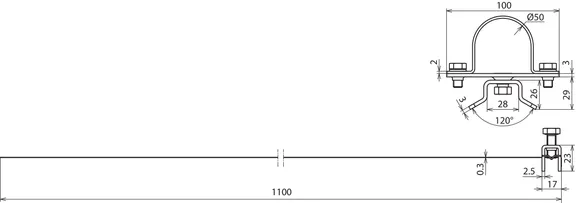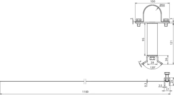 Mounting bracket for fixing supporting tubes (D50 mm)
