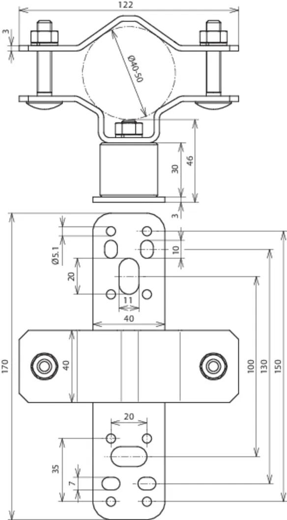 Fixing: [8x] Ø5.1 / [4x] 11 x 20 mm