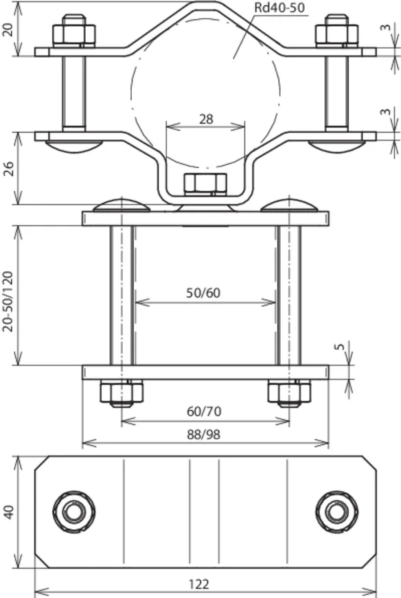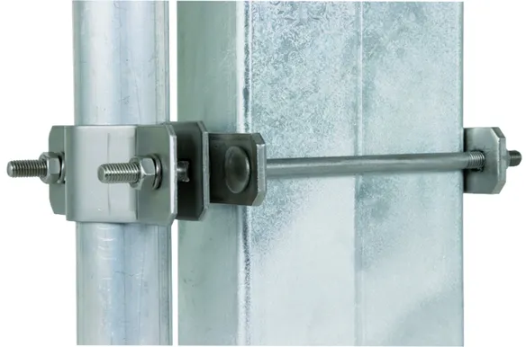 For fixing air-termination rods D40 or supporting tubes to the structure to be protected or the wall