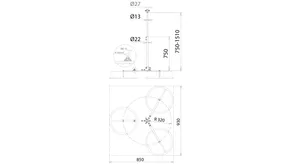 | Max. gust wind speed (3 bases, 8.5 kg each; l = 900 mm) | 170 km/h |