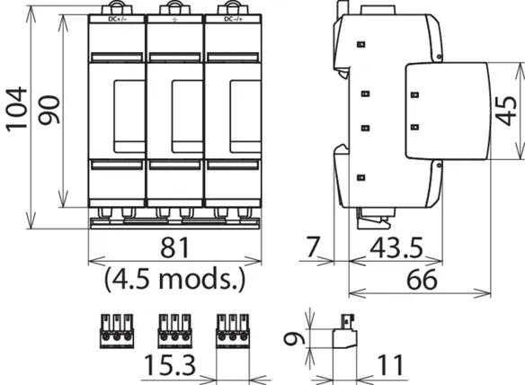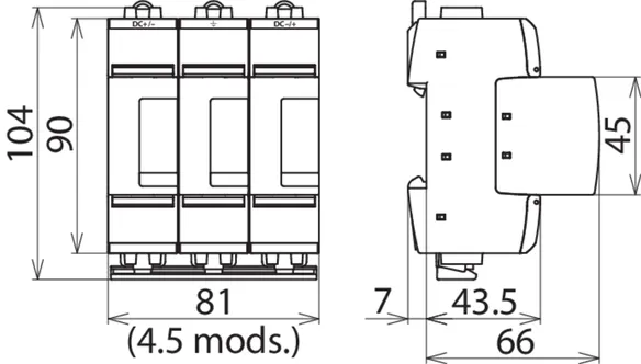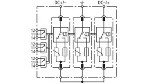 | Nominal discharge current (8/20 µs) [(DC+/DC-) --> PE] (In ) | 12.5 kA |