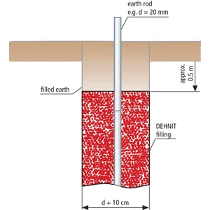 The extremely swellable and powdery special clay can bind water very well and thus represents a conductive enclosure of the earth electrode which has a positive effect concerning the dissipation resistance.