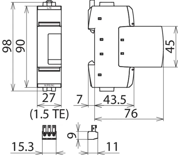 | SPD according to EN 61643-11 / IEC 61643-11 | type 2 / class II |