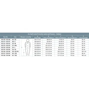 | Size (international) | Configurable: from 46 (XS) to 62 (3XL) |