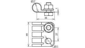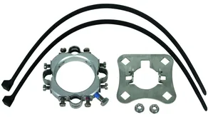 Fixing kit for mounting the HVI light Conductor on the supporting tube Ø50 mm (e.g. HVI long supporting tube), consisting of a connection plate (for four conductors, incl. two self-locking nuts) and a fixing ring with four slotted conductor holders (Ø17 mm) for the adjustment range (incl. two cable ties).